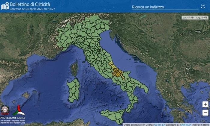 La Protezione Civile ha valutato, per la giornata di martedi 7 Aprile, ALLERTA ARANCIONE per rischio idrogeologico su alcuni settori di Abruzzo e Molise, ALLERTA GIALLA sempre idrogeologica su Abruzzo e settori della Puglia.