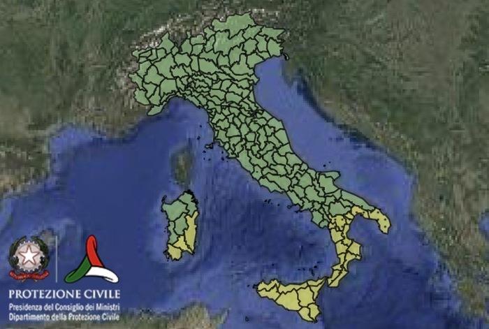 , allerta gialla su parte di Puglia, Basilicata, Calabria, Sicilia e Sardegna.