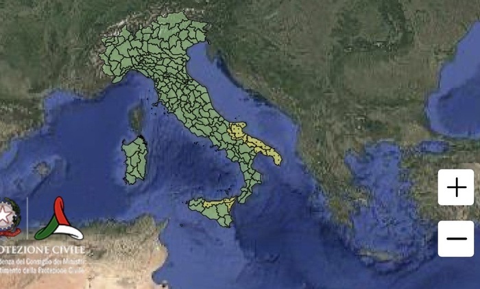 Sulla base dei fenomeni in atto e previsti è stata valutata per la giornata di lunedì 6 ottobre, allerta gialla per rischio temporali e rischio idrogeologico in Puglia e su settori della Sicilia.