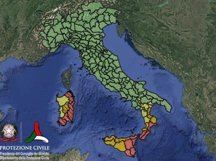 Sulla base delle valutazioni effettuate, per la giornata di martedì 20 gennaio è stata diramata allerta rossa su gran parte alcuni settori Sicilia, Calabria e Sardegna, allerta arancione su altri settori di Sardegna, Sicilia e Calabria, e allerta gialla alcune aree della Sardegna, Calabria e Basilicata.