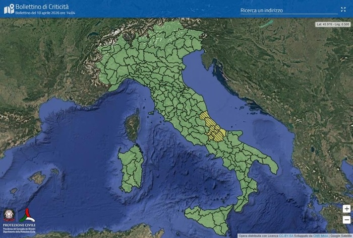 Allerta idrogeologica 11 AprileIl quadro meteorologico e delle criticità previste sull’Italia è aggiornato quotidianamente in base alle nuove previsioni e all’evolversi dei fenomeni, ed è disponibile sul sito del Dipartimento della Protezione Civile (www.protezionecivile.gov.it), insieme alle norme generali di comportamento da tenere in caso di maltempo. Le informazioni sui livelli di allerta regionali, sulle criticità specifiche che potrebbero riguardare i singoli territori e sulle azioni di prevenzione adottate sono gestite dalle strutture territoriali di protezione civile, in contatto con le quali il Dipartimento seguirà l’evolversi della situazione.