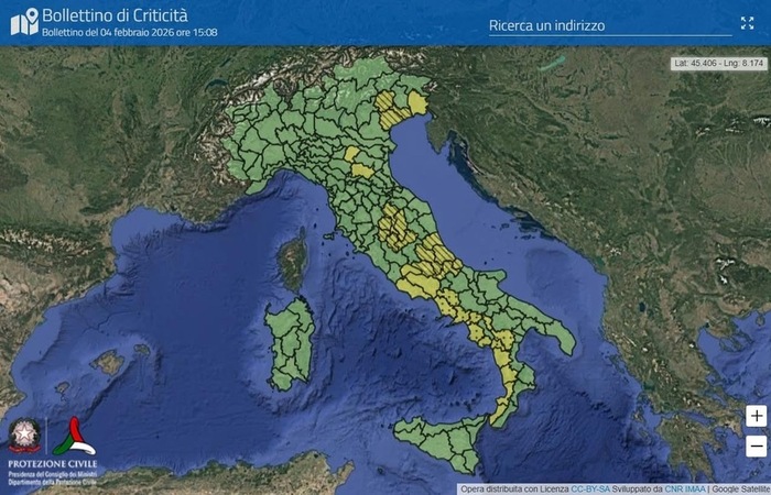 Le regioni a rischio criticità secondo l'avviso della Protezione CivileIl quadro meteorologico e delle criticità previste sull'Italia è aggiornato quotidianamente in base alle nuove previsioni e all’evolversi dei fenomeni, ed è disponibile sul sito del Dipartimento della Protezione Civile (www.protezionecivile.gov.it), insieme alle norme generali di comportamento da tenere in caso di maltempo. Le informazioni sui livelli di allerta regionali, sulle criticità specifiche che potrebbero riguardare i singoli territori e sulle azioni di prevenzione adottate sono gestite dalle strutture territoriali di protezione civile, in contatto con le quali il Dipartimento seguirà l’evolversi della situazione.