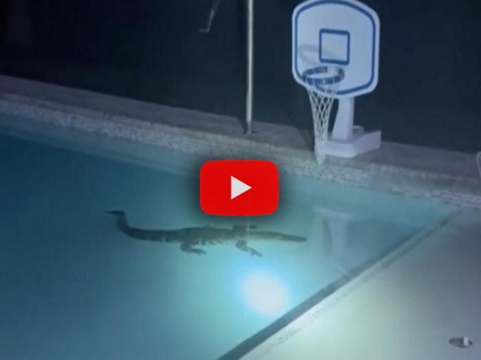 Alligatore gigante fa il bagno in piscina, la famiglia chiama i soccorsi; il Video