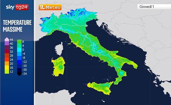 Già con il primo giorno dell’anno nuovo assisteremo a un risveglio decisamente gelido su gran parte del Nord e nelle vallate interne del Centro, con temperature di diversi gradi sotto lo zero e inferiori alla media del periodo. Al Nord il freddo si farà sentire anche durante il giorno, con valori che faticheranno a superare di poco lo zero; la presenza del vento contribuirà inoltre ad accentuare la sensazione di freddo.
