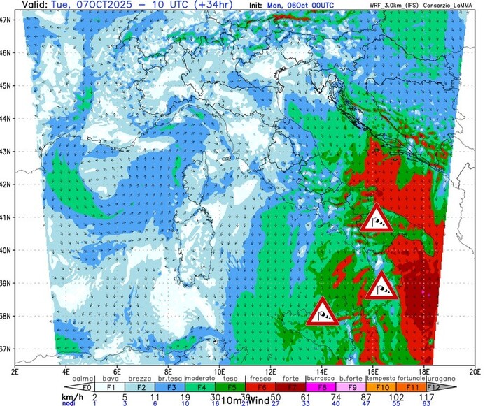 Nel corso di Martedì 7 Ottobre ci aspettiamo infatti una nuova burrasca di vento: soffierà intensa la Tramontana sul medio e basso Adriatico e sullo Ionio con raffiche taglienti ad oltre 90 km/h. Col passare delle ore le correnti più fredde si estenderanno a tutto il Centro-Sud (Maestrale sul versante tirrenico) provocando un generale calo delle temperature.