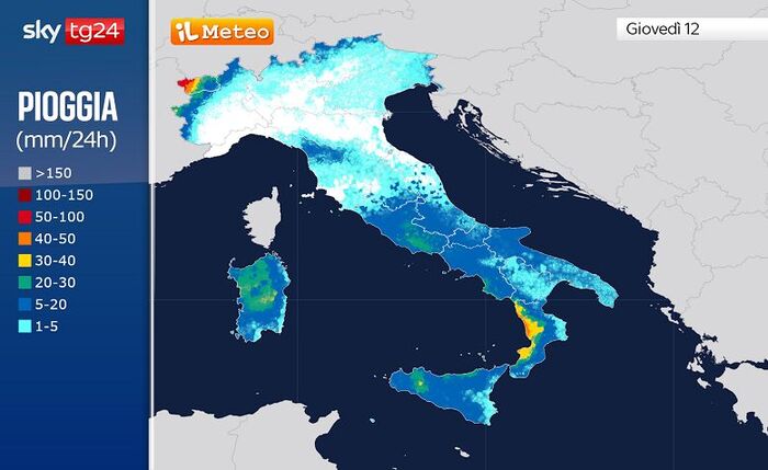 Giovedì 12 Febbraio: le zone colpite da piogge battenti