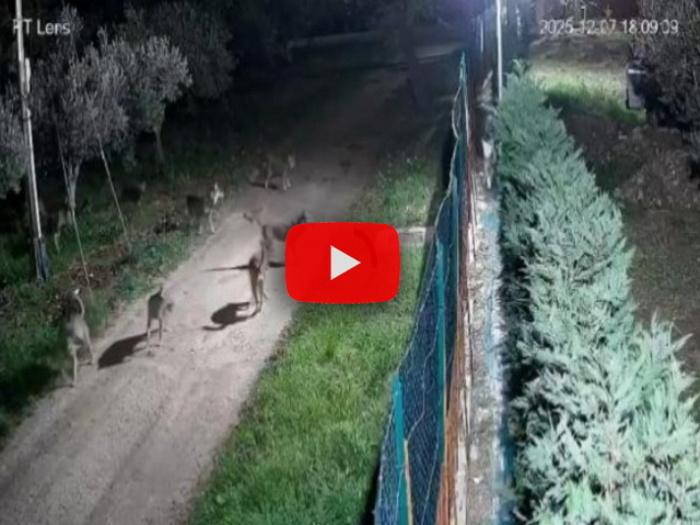 Nel video, registrato poco dopo le 18 nella cittadina frentana, si osserva il passaggio del branco, a conferma della presenza numerosa dei lupi sul territorio. Oltre il recinto di un terreno privato, un cane di grossa taglia e di colore bianco abbaia e corre avanti e indietro seguendo con attenzione i movimenti degli animali, che poco dopo compaiono nelle immagini della telecamera.