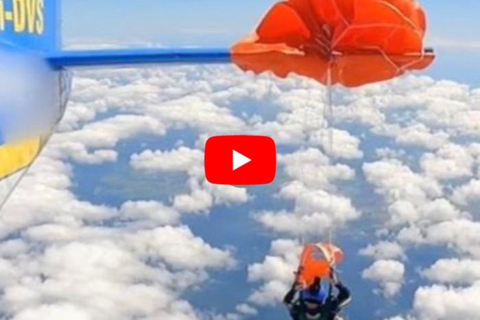 Durante il primo lancio, la maniglia del paracadute di riserva di un partecipante si è agganciata a un flap dell’ala, aprendo la vela e danneggiando lo stabilizzatore orizzontale. Le immagini mostrano l’uomo trascinato fuori dall’aereo e il paracadute avvolto attorno alla coda, mentre un altro paracadutista cade prima del previsto.