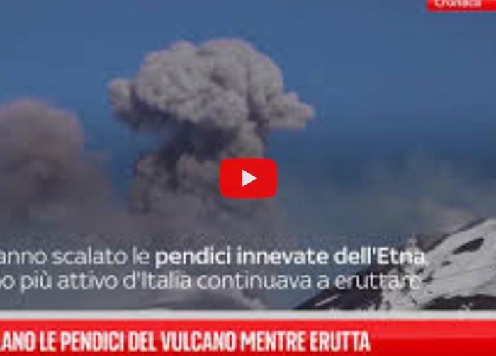 Etna, turisti scalano le pendici del vulcano mentre erutta, il video