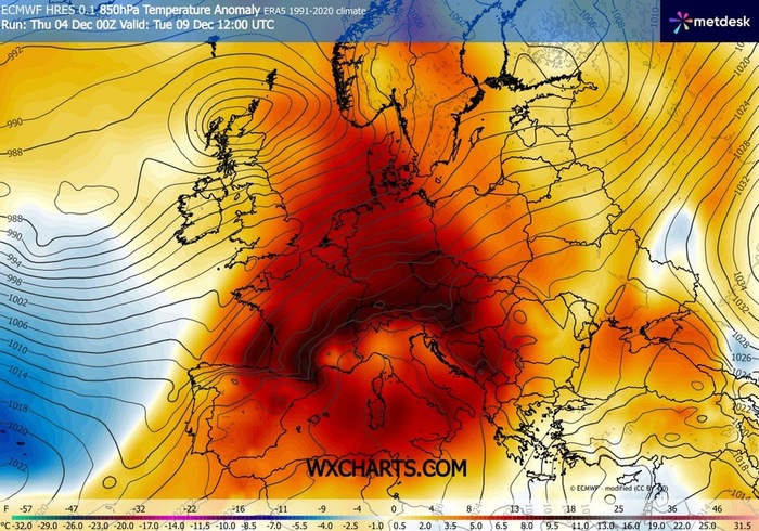 Tuttavia, sul finire di Novembre e con l’inizio di Dicembre, proprio in coincidenza con l’avvio dell’Inverno meteorologico, la circolazione generale ha subito un primo cambiamento. Il flusso zonale atlantico, più mite e umido, ha preso il sopravvento, convogliando masse d’aria decisamente più miti che hanno provocato un primo rialzo termico: l'aumento si è evidenziato un po' ovunque, ma soprattutto durante la notte al Nord e nelle zone interne del Centro, complice la maggiore copertura nuvolosa e il conseguente ristagno nei bassi strati del calore accumulato nelle ore diurne. Siamo dunque passati da un assaggio d’Inverno ad un rinnovato scenario autunnale.