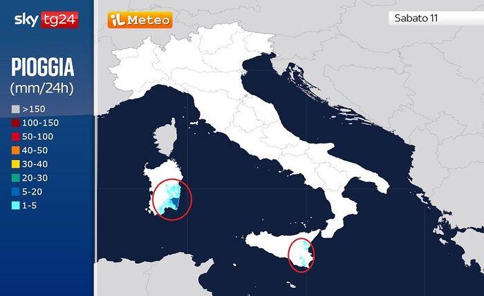 Entrando più nel dettaglio, la giornata di Sabato 11 Ottobre si aprirà con qualche banco di nebbia sulla Valle Padana, con una moderata instabilità sulla Sardegna e con molte nubi in Sicilia. Proprio sulle due Isole Maggiori sarà necessario tenere un ombrello a portata di mano, specie in Sardegna.