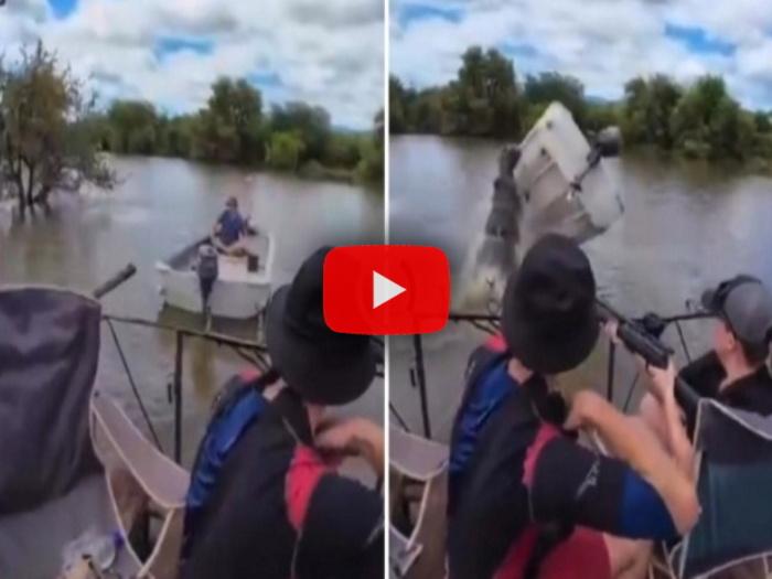 Nel video si vede l’animale emergere all’improvviso dall’acqua torbida del fiume e lanciarsi contro la barca. L’impatto è particolarmente violento: lo scafo si inclina e nel giro di pochi istanti si capovolge completamente, scaraventando l’occupante in acqua.