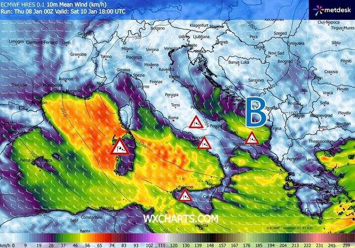 Nel corso di Venerdì 9 Gennaio ci aspettiamo un primo e deciso rinforzo dei venti dai quadranti meridionali a causa della formazione di un minimo depressionario su nostri mari.
