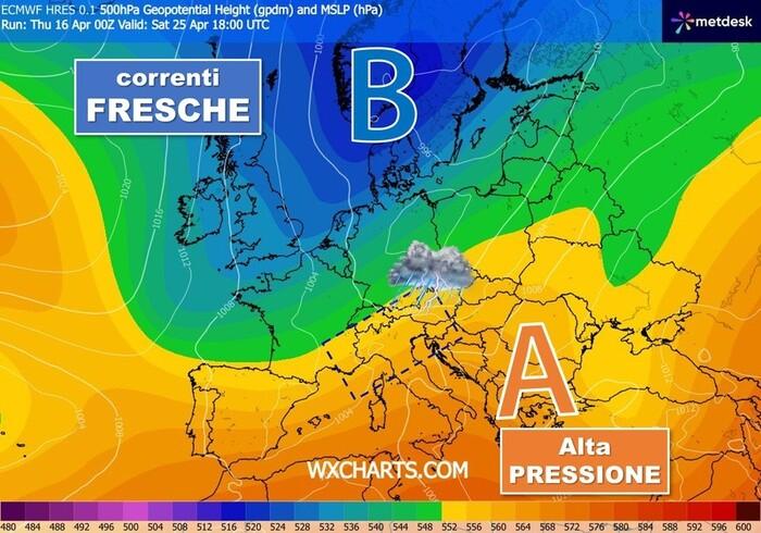 Ebbene, questo potrebbe essere grossomodo lo scenario per il 25 Aprile. Se da una parte si rischiano forti temporali (con pure il rischio di grandinate) al Nord e parte del Centro, di contro le regioni del Sud potrebbero anche sperimentare condizioni climatiche tipicamente estive grazie all'avanzata dell'alta pressione di origine sub-tropicale.