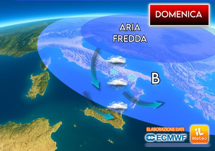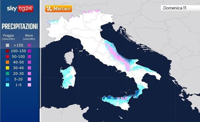 Oltre alla pioggia, sarà necessario prestare attenzione anche alla neve che, viste le temperature piuttosto rigide alimentate dai freddi venti di Bora e Tramontana, potrà spingersi fino a quote collinari lungo il settore appenninico affacciato sull’Adriatico e a quote più elevate, intorno agli 800/900 metri, sui rilievi meridionali della Calabria e su quelli settentrionali della Sicilia.