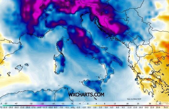 Ma attenzione perché il freddo si farà sentire anche sul resto del Paese dove le anomalie saranno solo di poco inferiori.