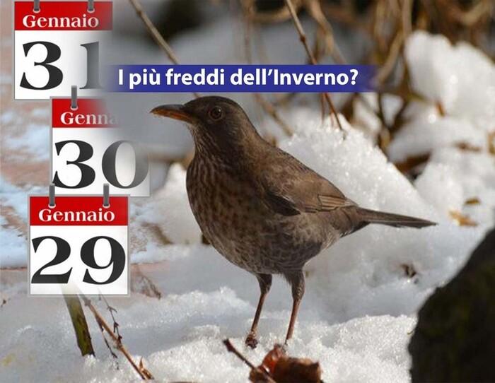 Ma perché li chiamiamo così? La leggenda narra che i merli avessero un tempo piume bianche e soffici. Per sopravvivere al gelo di Gennaio, una famiglia di merli raccolse provviste per rintanarsi al caldo nel nido. Uscirono solo il 28 gennaio, pensando che il freddo fosse finito, e iniziarono a sbeffeggiare l'Inverno. Infuriato, l'Inverno scatenò una tormenta gelida che durò tre giorni. I merli trovarono rifugio solo nei camini delle case: il calore li salvò, ma la fuliggine annerì per sempre le loro piume. Da allora, i merli sono neri e gli ultimi tre giorni di gennaio sono i più freddi dell'anno.