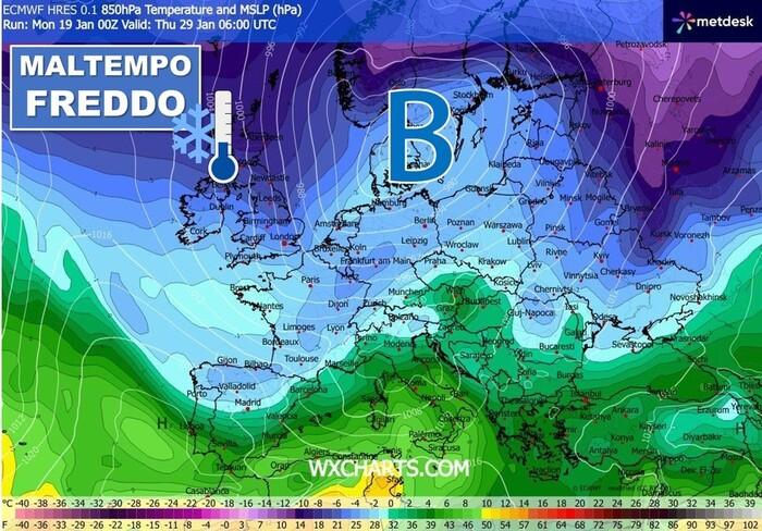 Mancano ancora diversi giorni, ma le dinamiche a scala emisferica suggeriscono che la parte finale del mese sarà caratterizzata da un impulso polare molto freddo. Dalla Penisola Scandinava, una massa d'aria gelida potrebbe scendere di latitudine, innescando una fase di maltempo su buona parte dell'Europa centro-meridionale e, potenzialmente, sull'Italia proprio in concomitanza con i Giorni della Merla.