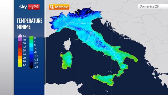 Sempre a cavallo di questo weekend , se da un lato l'atmosfera ci regalerà qualche temporaneo spiraglio di miglioramento, ecco che durante la notte saranno proprio i maggiori rasserenamenti a far disperdere maggiormente il calore assorbito durante il giorno verso la libera atmosfera spingendo così le colonnine di mercurio ancor di più verso il basso fino a raggiungere valori anche sotto la soglia del gelo e non solo in montagna, ma anche su molti tratti della valle Padana e nelle vallate più interne del Centro.