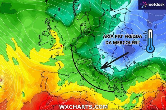 L'Italia sarà protagonista di una rapida successione di eventi atmosferici, che vedrà l'arrivo di una botta di aria fredda e, a stretto giro, la formazione di un vortice ciclonico intenso.