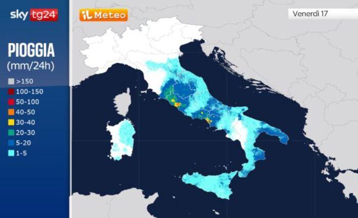 Dal punto di vista delle precipitazioni, gli effetti saranno limitati: si attendono solo piovaschi sparsi concentrati soprattutto sui rilievi del Medio Adriatico.