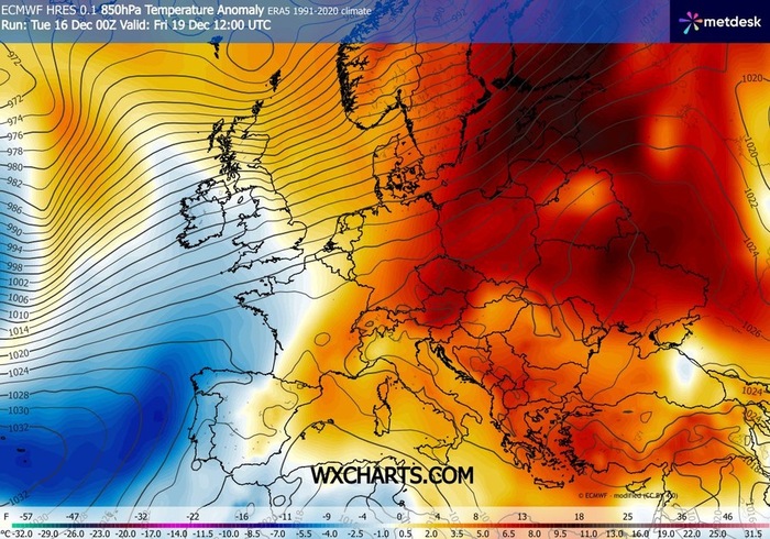 Un po' diversa, invece, la situazione prevista al Nord, in particolare sulla Valle Padana. Qui, gli effetti dei venti caldi di Scirocco, si faranno sentire in modo decisamente più attenuato; una maggiore incertezza meteorologica, unita alla presenza di nebbie fitte e persistenti, contribuiranno inoltre a contrastare l’aumento delle temperature. I valori resteranno quindi più contenuti, regalando un contesto meno mite e un po' più in linea con il mese di Dicembre.