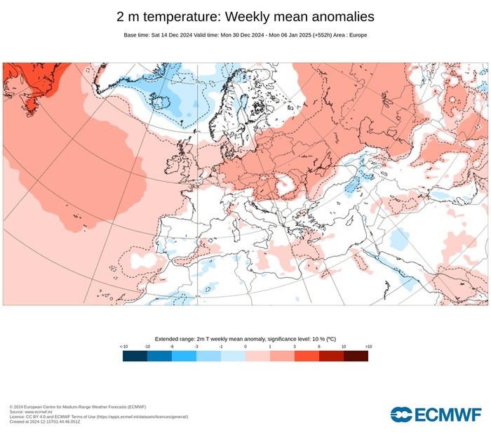 Anomalia di temperatura: nessun freddo intenso in vista degli ultimi giorni del 2024Nel dettaglio: difficile sbilanciarsi ma con uno scenario del genere gran parte del nostro Paese osserverebbe un cielo grigio per la presenza di nubi basse o nebbie, a seconda delle zone. Qualche occhiata di sole in più al Sud. In montagna invece il cielo risulterebbe spesso sereno ma con temperature oltre la media del periodo e conseguente inevitabile fusione del manto nevoso.