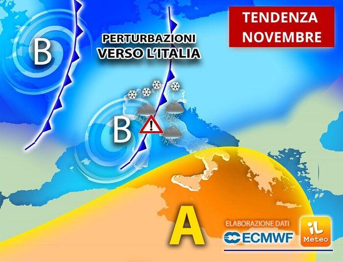 La causa di questo scenario è da ricercare nell'area britannica, dove un vasto e persistente centro di bassa pressione stazionario agirà da "fucina" del maltempo. Questo imponente vortice metterà infatti in moto un flusso quasi ininterrotto di correnti instabili e di fronti atlantici che, in serie, si dirigeranno verso il bacino del Mediterraneo, rendendo così la prima metà di Novembre fortemente perturbata.