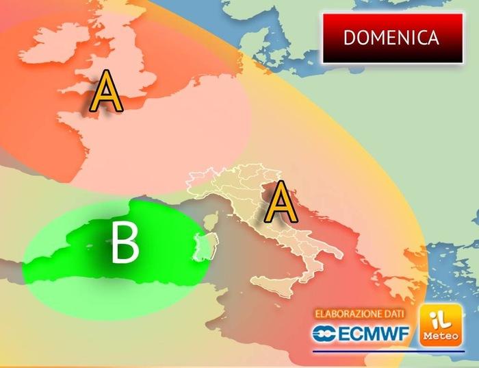 Questo assetto barico garantisce un quadro meteo stabile e soleggiato, mentre una blanda circolazione ciclonica tra la Spagna e le Baleari riesce appena a lambire le nostre Isole Maggiori, portando con sé qualche timido disturbo.