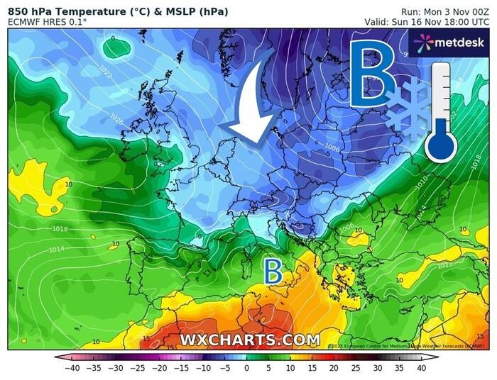 Occhi puntati, in particolare, da Domenica 16 Novembre in avanti quando una poderosa irruzione di aria fredda di origine artica potrebbe scivolare dapprima verso l'Europa centrale, per poi puntare l'Italia.