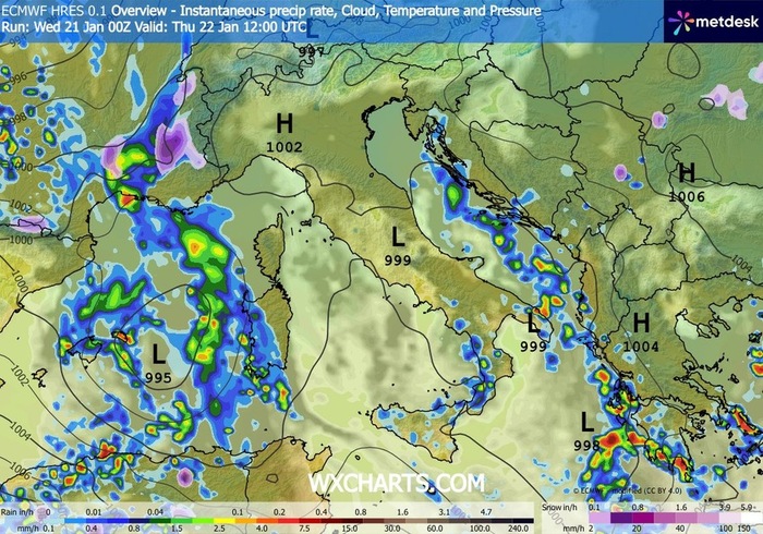Mentre andrà lentamente esaurendosi l'influenza del Ciclone Harry, l’atmosfera tenderà a diventare temporaneamente più tranquilla su gran parte dell'Italia. La giornata di Giovedì 22 Gennaio trascorrerà infatti senza fenomeni di rilievo, seppur in un contesto climatico freddo al Nord, dove non mancheranno gelate notturne e mattutine.