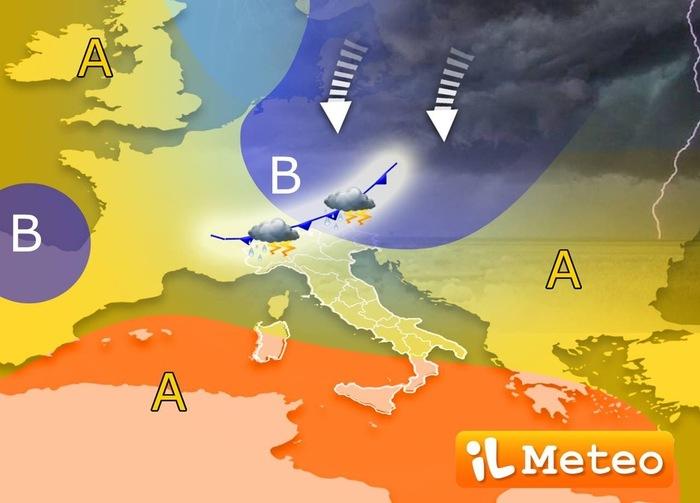 I valori termici scenderanno agilmente di 5-6°C, mettendo ufficialmente fine al caldo anomalo di questi giorni e riportandoci all'interno delle medie climatologiche tipiche di fine Aprile/inizio Maggio. Questa giornata di "ritorno al passato" sarà inoltre segnata dal passaggio di alcuni rovesci a macchia di leopardo, distribuiti in modo irregolare da Nord a Sud.