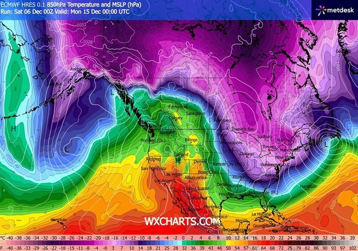 L'apice di questa ondata è previsto intorno al 15 dicembre, quando una discesa di aria estremamente fredda potrebbe portare anche temperature eccezionali.
