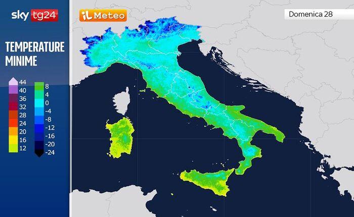 Farà davvero freddo, in particolare durante la notte e nelle prime ore del mattino, specialmente al Nord e nelle aree più interne del Centro. I rasserenamenti notturni contribuiranno infatti a una più rapida dispersione del calore accumulato durante il giorno, provocando una sensibile flessione delle temperature, che torneranno a scendere sotto lo zero non solo in montagna, ma anche su molti tratti di pianura.