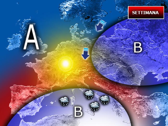 Ne derivano due effetti contrapposti: da un lato, lo scivolamento verso i Balcani e l’Europa orientale di masse d’aria fredda di origine russa fino al Mar Nero; dall’altro, l’approfondimento di una depressione sul Mediterraneo occidentale, nei pressi delle Baleari. Questo vortice, inizialmente isolato, nel corso della settimana verrà alimentato da correnti più fredde in arrivo da est, che ne favoriranno anche lo spostamento verso il nostro Paese.