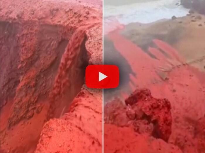 fiumi di acqua color cremisi che scorrono verso il mare, creando uno spettacolo naturale di grande impatto visivo. Il fenomeno, suggestivo ma del tutto naturale, è causato dall’