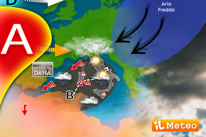 Purtroppo questa DANA non sarà stazionaria, si sposterà verso est entro le prossime 24 ore colpendo dapprima la Sardegna e poi gran parte del Sud; al Centro-Nord, di contro, il tempo resterà più stabile.