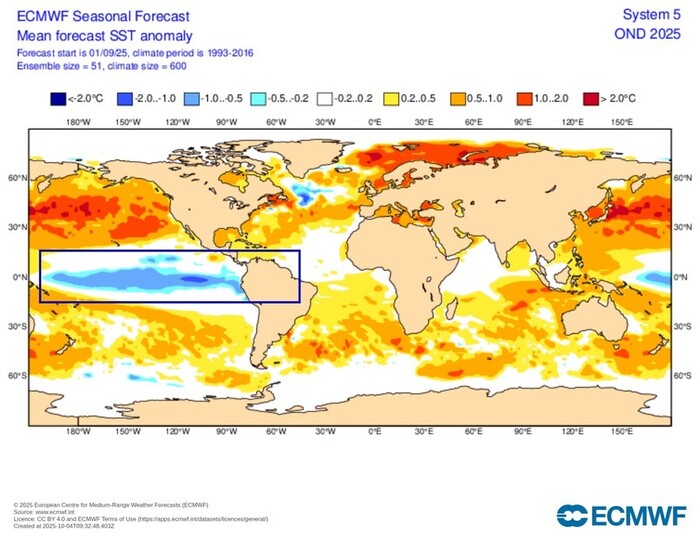Stiamo parlando di un evento strettamente connesso alla dinamica delle temperature oceaniche e ai venti tropicali che può influenzare in modo significativo la circolazione atmosferica su vasta scala, con effetti indiretti anche in Europa. In particolare, l'Autunno e l'Inverno 2025/2026 potrebbero risentirne attraverso anomalie nelle precipitazioni, nella frequenza delle irruzioni fredde e nella disposizione delle alte e basse pressioni, anche in Italia.