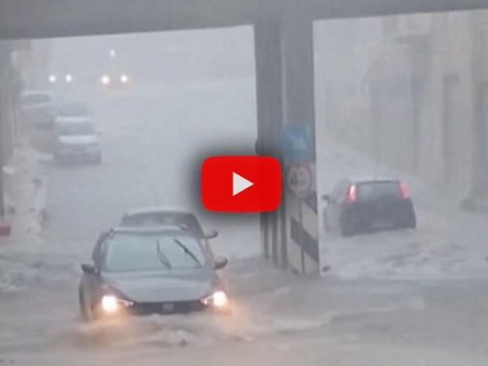 Meteo: Marsala, forte maltempo, strade allagate e auto bloccate; il Video