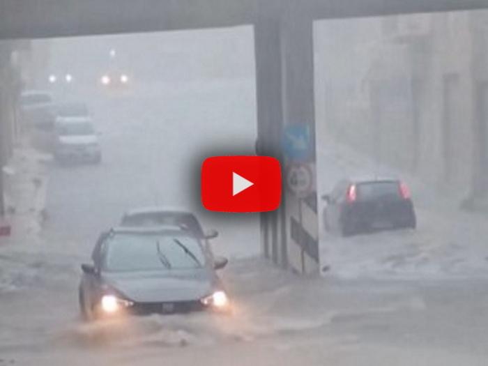 Meteo: Marsala travolta dal maltempo, strade allagate e auto bloccate (Video)
