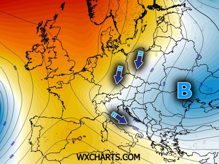 La ragione va ricercata nella presenza di un vasta e fredda circolazione ciclonica sul lato più orientale del nostro continente che riuscirà a sospingere verso l'Italia masse d'aria più fredda e instabile.