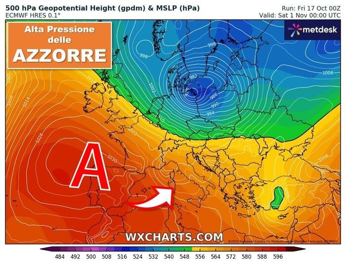 Il colpo di scena potrebbe arrivare tuttavia dopo questa fase perturbata, ovvero proprio in concomitanza tra Halloween e il weekend di Ognissanti, quando è attesa una nuova svolta grazie alla rimonta di un vasta alta pressione destinata a riguadagnare lo spazio perduto.