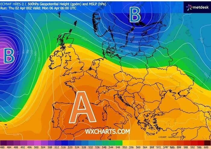 Il grande protagonista di questo ribaltone sarà un possente anticiclone ibrido: stiamo parlando di una vasta area di alta pressione, un mix tra azzorriana, foriera di stabilità e clima gradevole e africana, sinonimo di primi caldi. Questa struttura eterogenea blinderà l'Italia, spazzando via il maltempo e regalandoci un clima più da Primavera avanzata che da avvio stagionale.