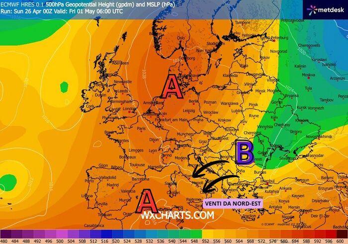 Rimonta dell'anticiclone ma anche vento da Nord-Est il Primo MaggioResta da capire se questa affermazione dell'alta pressione segnerà l'inizio di una fase duratura o se sarà solo una breve parentesi. La sfida tra lo scudo anticiclonico e le infiltrazioni d'aria fresca determinerà il volto della prima decade del mese: sarà questo l'avvio definitivo della bella stagione o la primavera avrà in serbo nuovi colpi di scena temporaleschi? Data la distanza temporale, sarà fondamentale seguire i prossimi aggiornamenti per confermare l'intensità della ventilazione e l'esatta tenuta del bel tempo.
