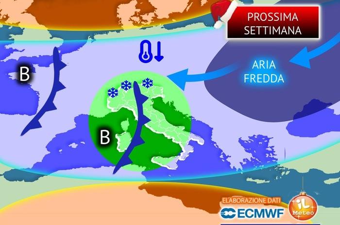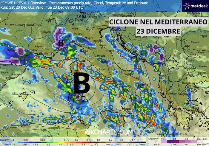 L'azione del Ciclone si farà sentire fin dall'inizio della settimana. Già a partire da Lunedì 22 Dicembre, l'ingresso delle correnti fredde darà il via alla formazione del vortice, che punterà dritto verso l'Italia. Le prime piogge, che si preannunciano intense, colpiranno inizialmente il Nord Ovest e tutti i settori tirrenici.