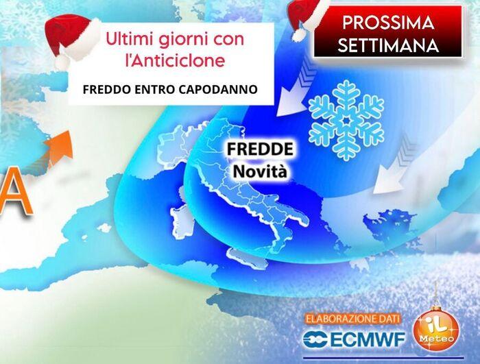 L'ingresso di queste correnti fredde sul Mediterraneo tenderà a destabilizzare l'atmosfera. Sul Centro-Sud in particolare, ciò potrà provocare lo sviluppo di piogge e nevicate che, tra la fine dell'anno e l'inizio del 2026, potrebbero raggiungere quote molto basse.