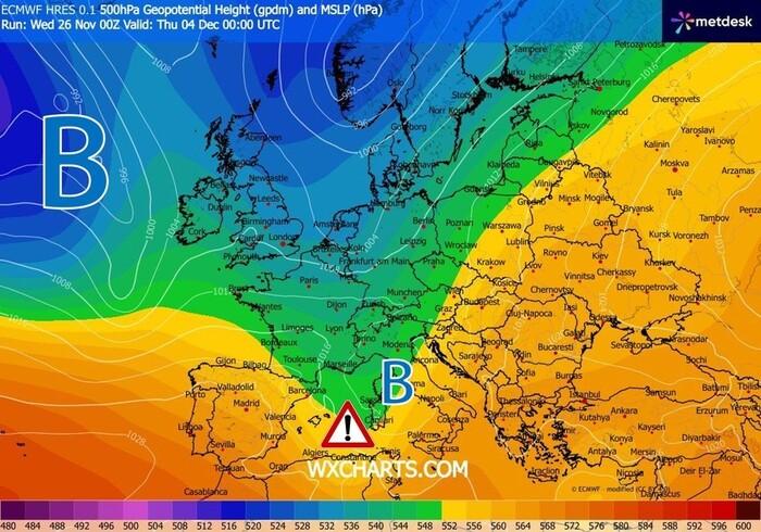 Porta Atlantica ben spalancata dunque, il nuovo mese di Dicembre inizierà nel segno del maltempo.
