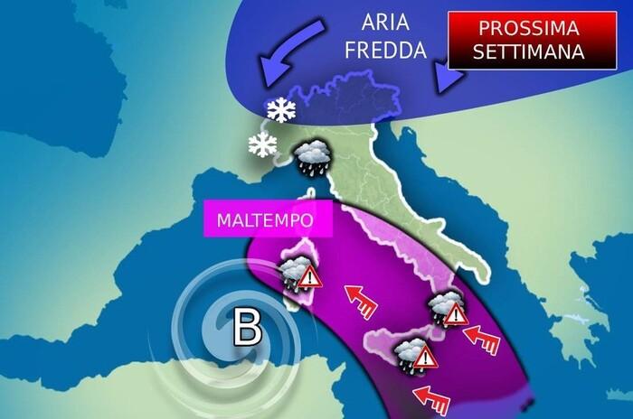 Lo scenario meteo, infatti, non sembra destinato a stabilizzarsi in tempi brevi. Nella seconda metà della prossima settimana è previsto l'arrivo di nuovi impulsi instabili dall'Atlantico. Questa seconda ondata di maltempo potrebbe spostare il suo baricentro verso il Centro-Nord.