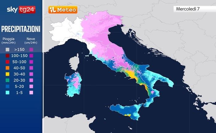 Già dalla giornata di Lunedì 5 Gennaio sono previste le prime piogge e temporali in particolare sulle regioni del Centro-Sud. Una configurazione di questo tipo è tipica della stagione invernale, ma troverà un'atmosfera piuttosto "calda" dopo settimane caratterizzate da temperature anomale, sopra media: il contrasto termico tra l’aria fredda in arrivo e le acque del mare ancora relativamente calde fornirà energia supplementare ai sistemi perturbati, intensificando i fenomeni. Ciò significa piogge persistenti e anche abbondanti, con il rischio di accumuli pluviometrici notevoli e conseguenti criticità idrogeologiche (allagamenti, alluvioni lampo e frane lungo i versanti).