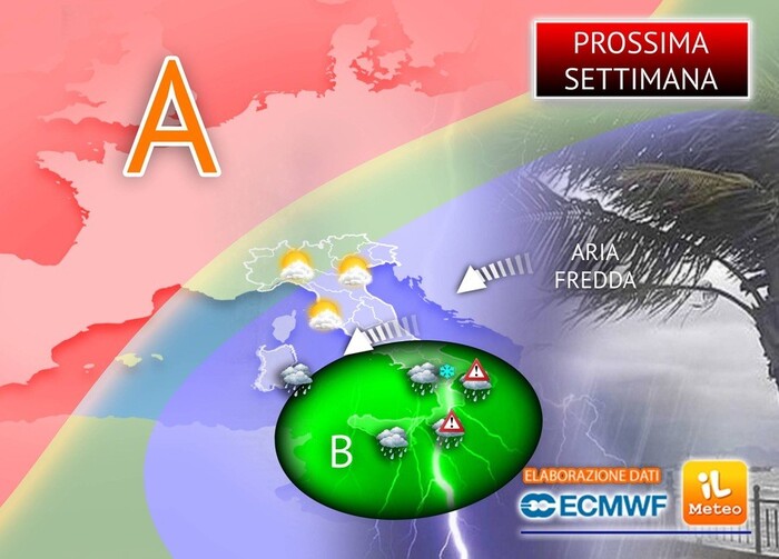 Prossima Settimana instabile, con qualche pioggia e nevicate sui rilievi